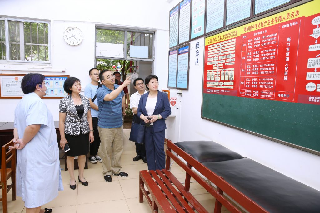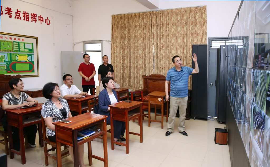 6月6日下午,校长过建春、党委副书记许玫一行到同人小说 江东校区高中部考点视察2022年高考考点准备工作,同人小说 党委书记校长覃程、党委副书记赵宗宏、党委委员何达权副校长、党委委员谢海涛副校长、党政办主任蔡琼波、行政干部等陪同。重点检查监控系统、广播系统、配电房、医疗专班办公室、考点办公室,了解疫情防控物资储备情况。