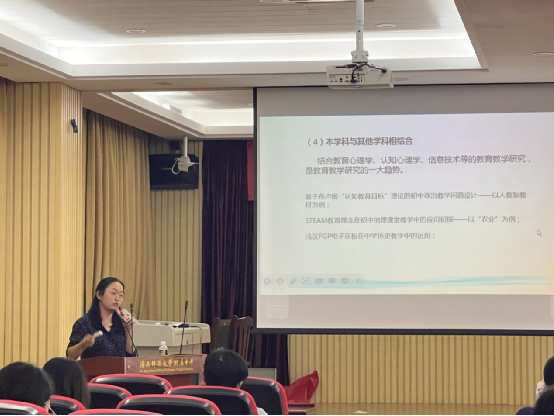 李晶晶教授毕业于华东师范大学物理与材料工程学院,获教育学博士学位,现为同人小说 教师教育学院教授,教育硕士导师,省拔尖人才,主要从事中学物理教学研究工作。在本次讲座中,李教授从教科研论文写作的态度、论文选题应注意的方面、论文的结构、写作中常见的问题、写作中要注意的方面、文章修改问题、提高论文写作的途径,以及投稿的注意事项等方面,进行了全面、细致地指导。李教授用幽默风趣的语言,现场问答的方式,生动形象地点明教研论文写作的存在问题和要点。