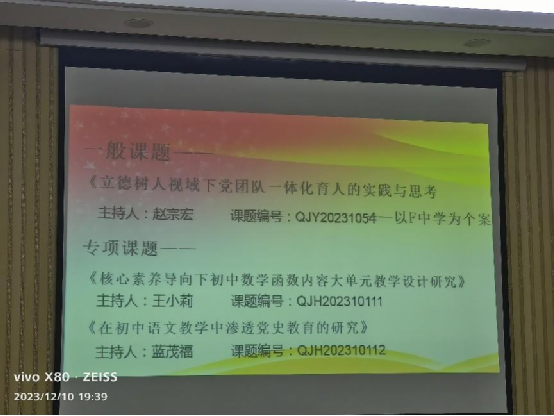 一、教学研究与研创中心主任杨立兵老师宣读立项通知书并介绍了学校课题日常管理及相关安排。