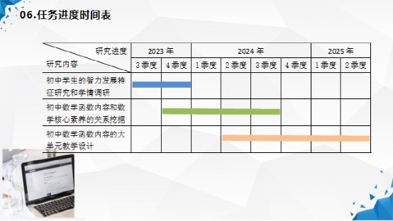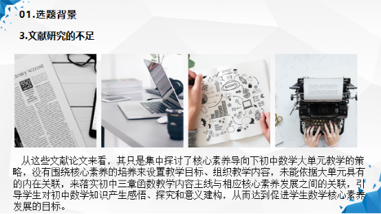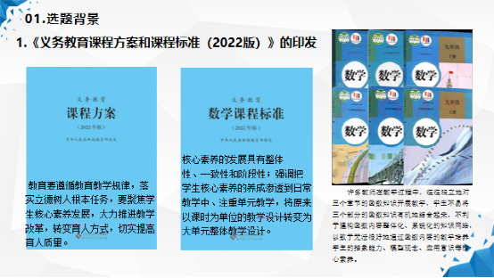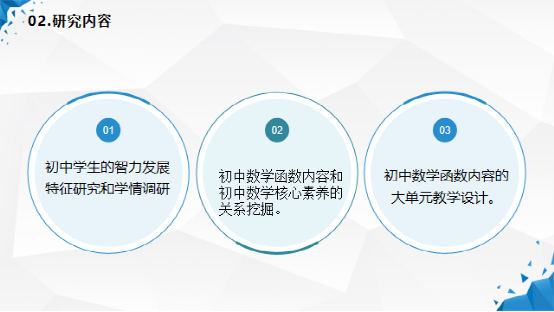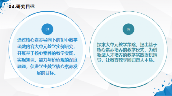 1.界定了本课题的三个核心概念:一是核心素养,二是初中数学函数内容,三是大单元教学。