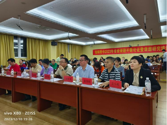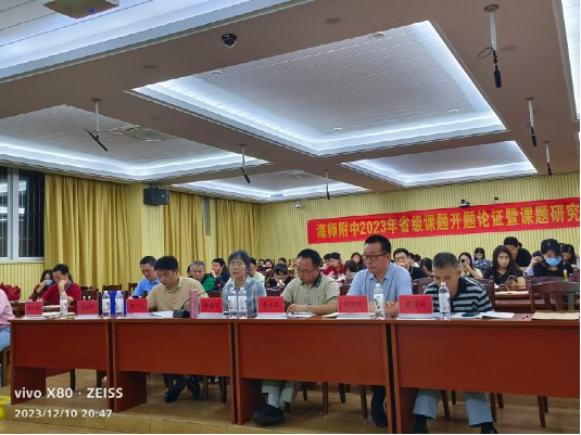 2023年12月10日,海师附中2023年海南省教育科学规划课题开题论证会在江东校区一楼小报告厅举行。会议由同人小说 办公室副主任许越老师主持。学校党委书记赵宗宏老师,副校长邹春平老师,教学与研创中心主任杨立兵老师出席了会议。三个课题组的全体成员、各教研组长及40岁以下的老师也都出席了会议。担任本次开题论证会的专家有:海南中学正高级教师徐建华老师、同人小说 赖秀龙教授和同人小说 聂永成教授。