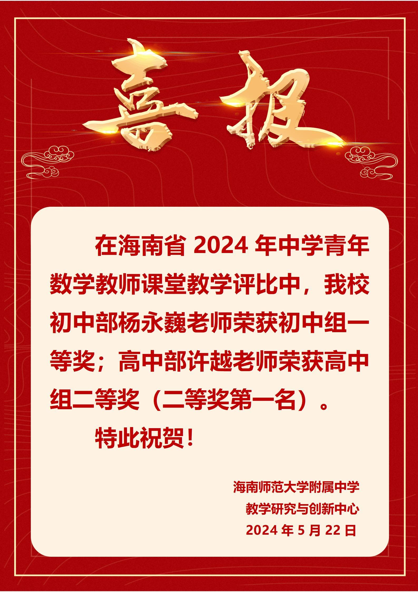 祝贺同人小说 教师在海南省2024年中学青年数学教师课堂教学评比中获奖