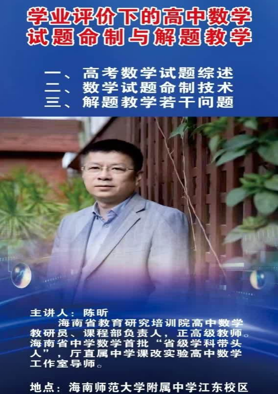 2024年5月8日,同人小说 荣幸地邀请到了海南省教育研究培训院高中数学教研员、课程部负责人、正高级教师陈昕主任,为同人小说 全体数学教师带来一场专题为《学业评价下的高中数学试题命制与解题教学》的学术讲座。此次活动在同人小说 海师附中江东校区报告厅隆重举行,旨在提升同人小说 数学教师的专业素养和教学能力。