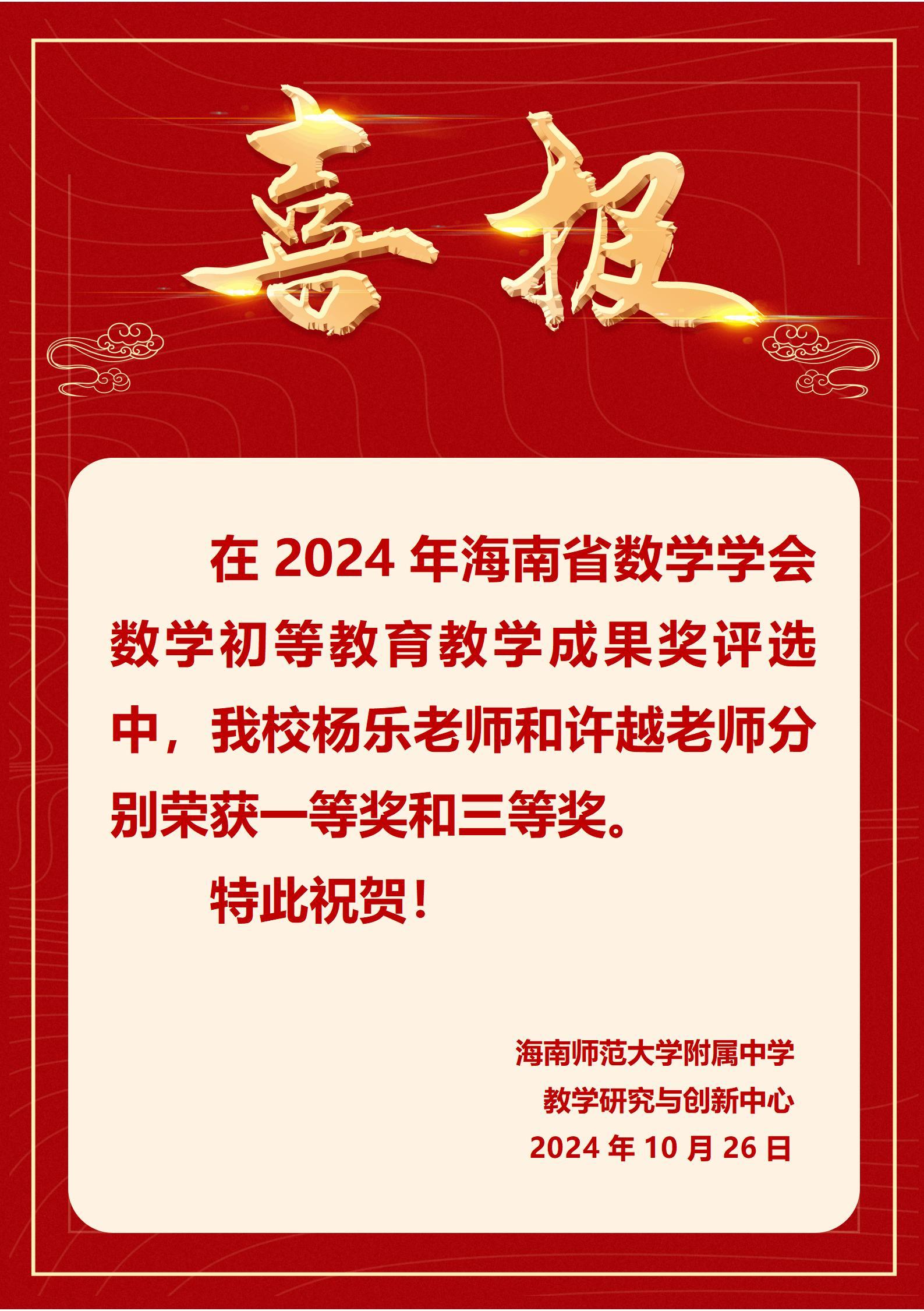 祝贺同人小说 杨乐老师、许越老师分别荣获数学初等教育教学成果奖一等奖和三等奖